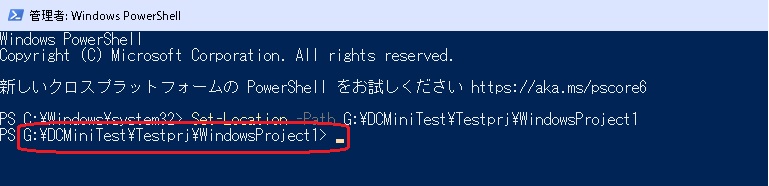 PowerShellのAdmin起動については、PowerShell起動後にCTRL+V(貼り付け)か