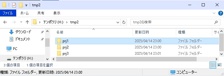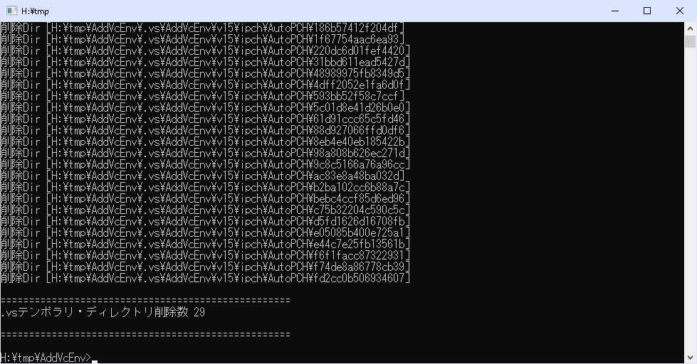 3つのプジェクトがあり、それぞれに.vsがあります。この場合 h:\tmp2をカレントにしてdeldotvs