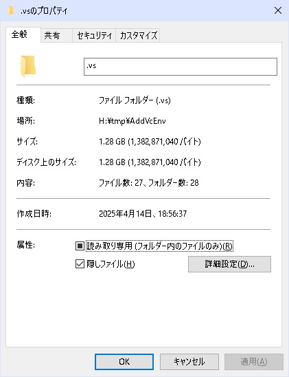 リビルド直後の.vsフォルダは75M程度でした。(どんどん成長してしまうのですね)